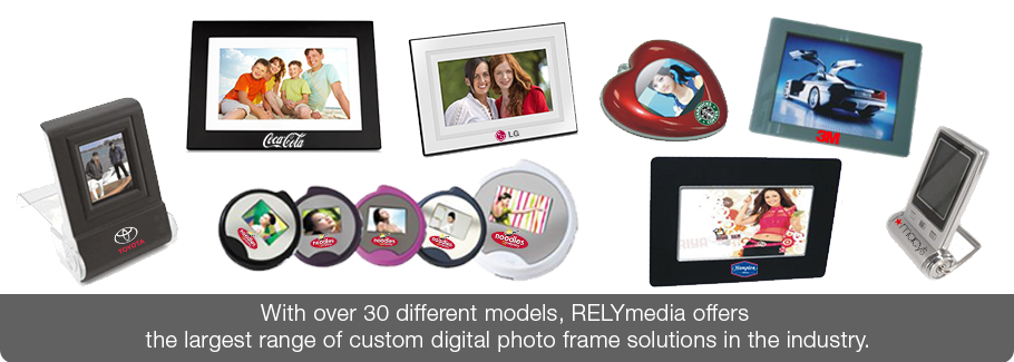 We carry an endless range of styles and sizes with LCD panels from 1.1 inch to 32 inches. All of our digital photo frames are available in a wide range of colors and packaging. We also offer multiple logo imprint options including color printing, laser engraving, and embossing. Custom color matching is also available on some models.